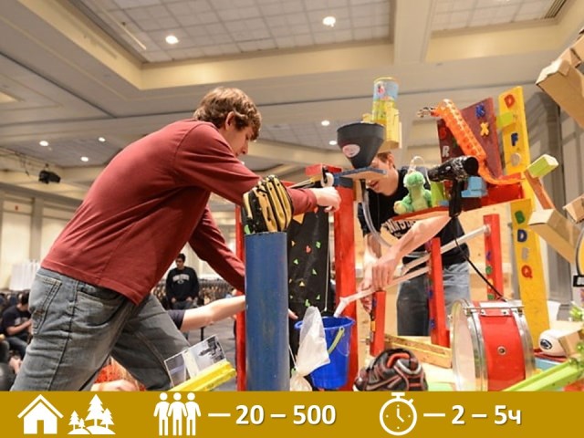 Например, упомянутый выше «Импульс» (машина Голдберга») позволяет осуществить такой проект и на 400-500 участников. Нужна лишь подходящая площадка.