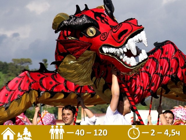 «Китайский» — гибрид — спортивный соревновательный тимбилдинг, завершающийся творческой частью. В самом начале это почти спортивные состязания между командами. В конце мы устраиваем настоящий фестиваль китайских драконов с дефиле от каждой команды.