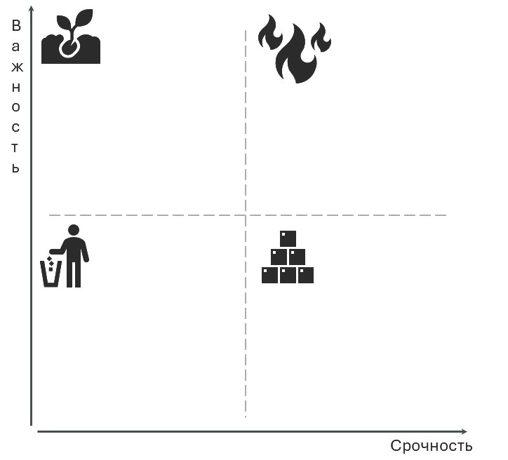 Но как способ расстановки приоритетов и планирования, названный «матрица Эйзенхауэра», обрел широкую известность благодаря гуру саморазвития и личной эффективности – Стивену Кови. В 70-х годах, описывая способы управления временем, он упоминал об обсуждаемом нами принципе.