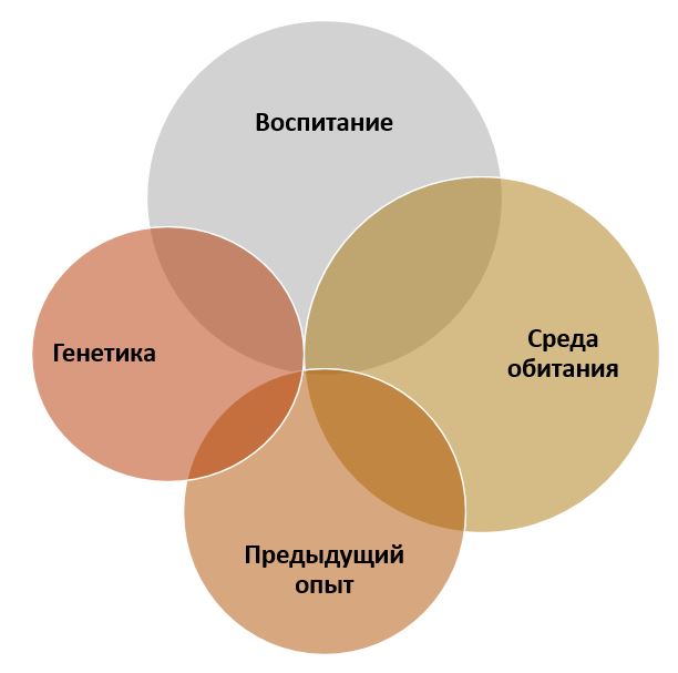 - средой развития (школой, ВУЗом, сообществами и т.д.) и проживания (да-да, даже район и его архитектура накладывают отпечаток на поведение человека);