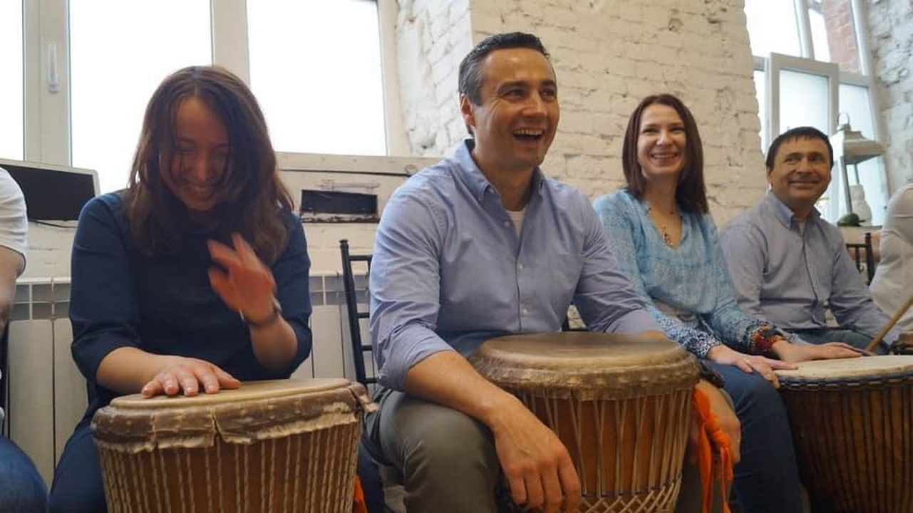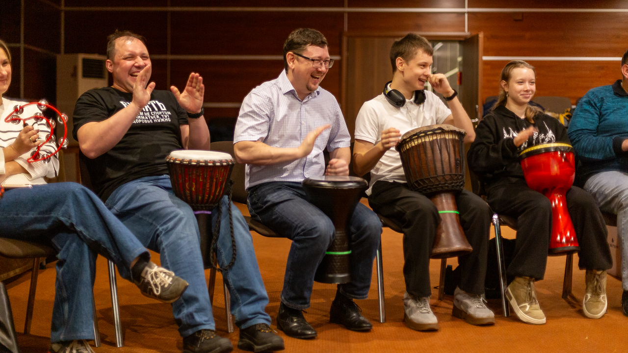 Ведущий шаг за шагом помогает участникам войти в процесс: сначала простые удары, затем общее звучание, а дальше — ощущение настоящего командного потока. Музыкальная подготовка не требуется. Всё строится на понятных сигналах, поддержке и атмосфере доверия.