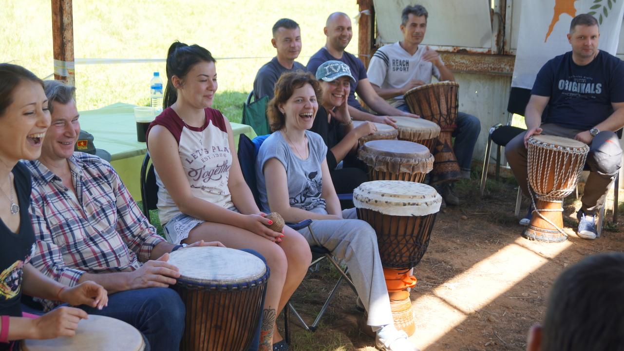 Короткая программа интерактив с барабанами и перкуссией - "взбодриться", зарядить участников эмоциями - от 15-20 до 30 минут.