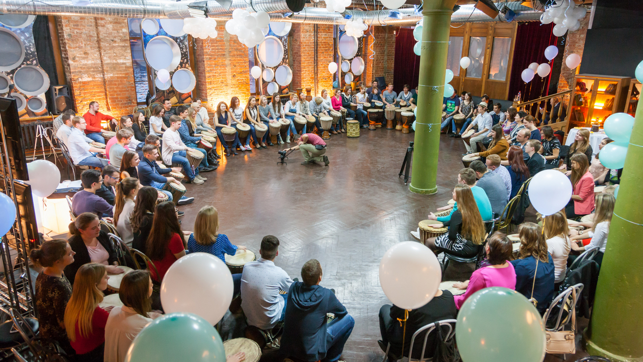 Барабанный интерактив работает с любой аудиторией: он снимает напряжение и повышает динамику мероприятия, убирает страх «я не смогу» и быстро превращает разрозненных людей в сплочённую группу, испытывающих одни эмоции.