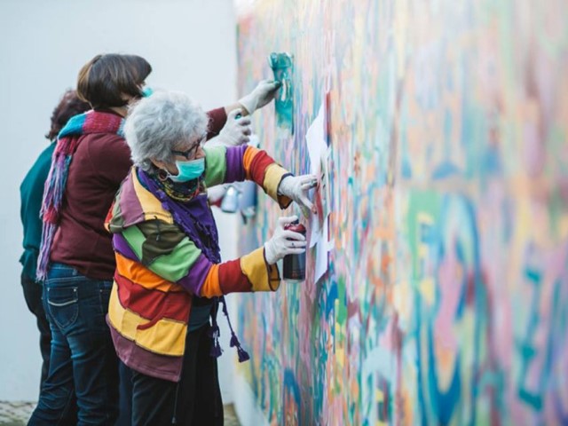 Если вы задумали создать гигантскую картину или провести творческий баттл для нескольких команд — этот формат для вас. Прекрасно подойдет для летнего расслабленного корпоратива или конференции. Итак, командам предстоит на одном полотнище/стене создать свои графические послания в разных стилях и техниках.
