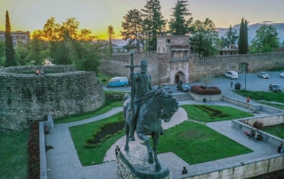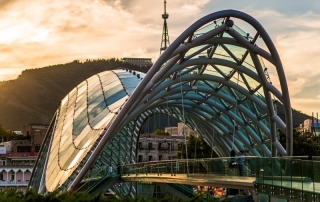 - Тбилиси с его знаменитым мостом Мира, площадью Вахтанга Горгасали (с лежащими рядом банями и ботаническим садом с каньоном), театром марионеток Резо Габриадзе, крепостью Нарикала и храмом Метехи (которые соединяет канатная дорога);