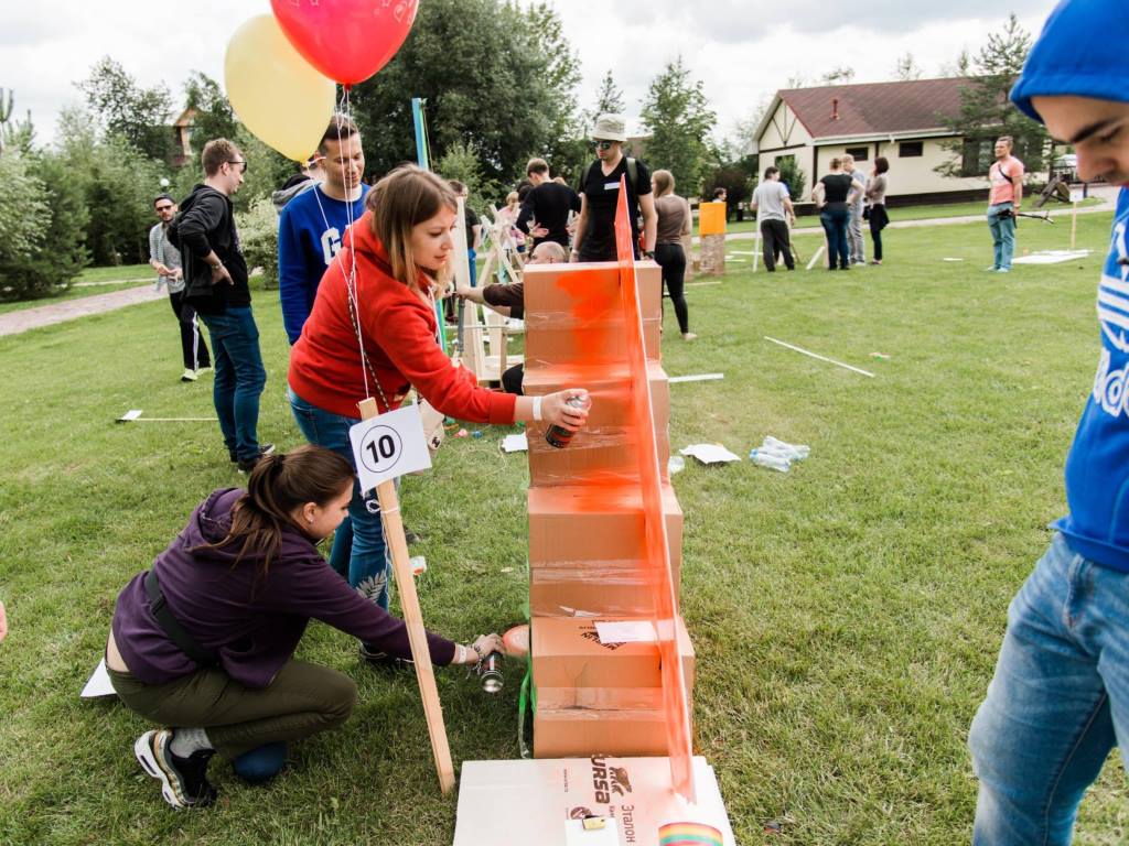 Мы, «Лаборатория Деловых Игр», делаем акцент на смысловом содержании формата, основанного на работе Голдберга. Для нас важна не только метафора отдельных взаимозависимых частей и совместный фан. Но и постоянная коммуникация — согласование подходов, обмен ресурсами, информацией и опытом. Поэтому, помимо чисто фановых задач, в некоторых проектах мы стремимся решить задачи глубинного командообразования, изменяющего корпоративную культуру в позитивную сторону. Для этого мы расширяем временные рамки мероприятия (конечно, по согласованию с заказчиком) и встраиваем квестовую механику, позволяющую моделировать большую интенсивность коммуникаций между командами.